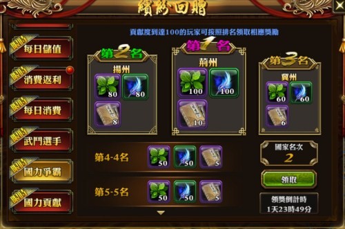 2、活動結束時,排行榜名次以遊戲內【繽紛回饋】-【國力貢獻】領獎介面最終結果為準;